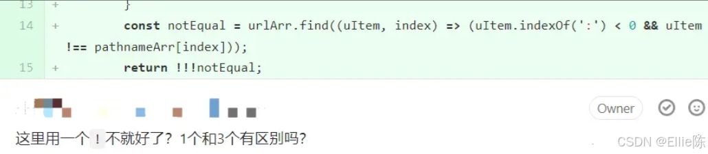 因为当时习惯取真值使用!!,取真值的反值便不假思索地使用了!!!,百度了一下,好像!和!!!作用的确是一样的,有点画蛇添足味道。