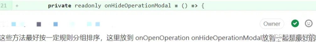 因为我经常将控制弹窗的两个函数隔开了好几个函数,leader觉得这样实在不优雅,提了这点建议,我觉得确实如此,改完后代码阅读舒服很多,且关联函数在附近的确能够在排查问题时候更快定位问题。