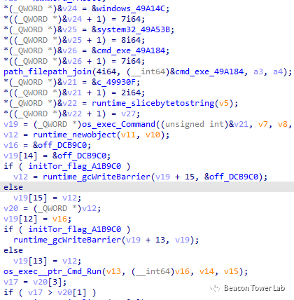 创建cmd.exe执行程序相关代码,如下图所示: