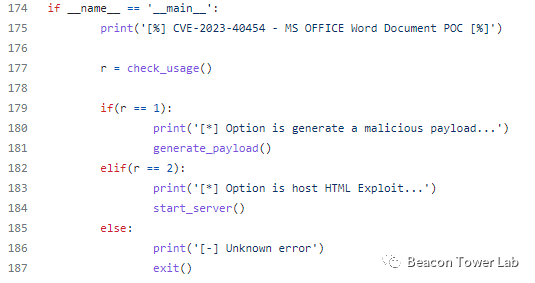 在poc.py的末尾,有段帮助信息,表明这是CVE-2023-40454的利用程序,如下图所示: