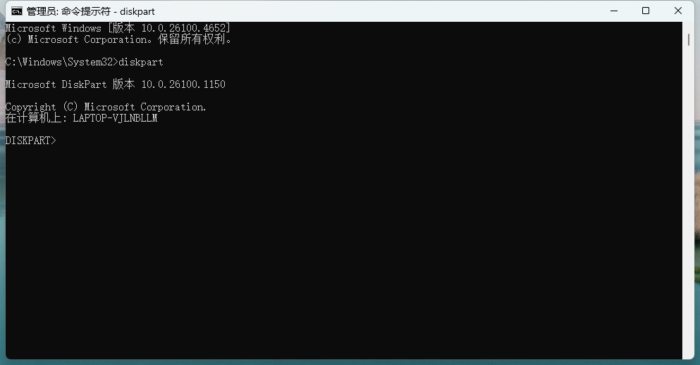 2.启动diskpart工具 :在管理员命令窗口输入 diskpart 点击回车.