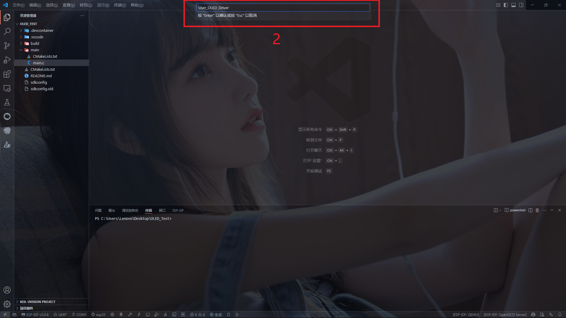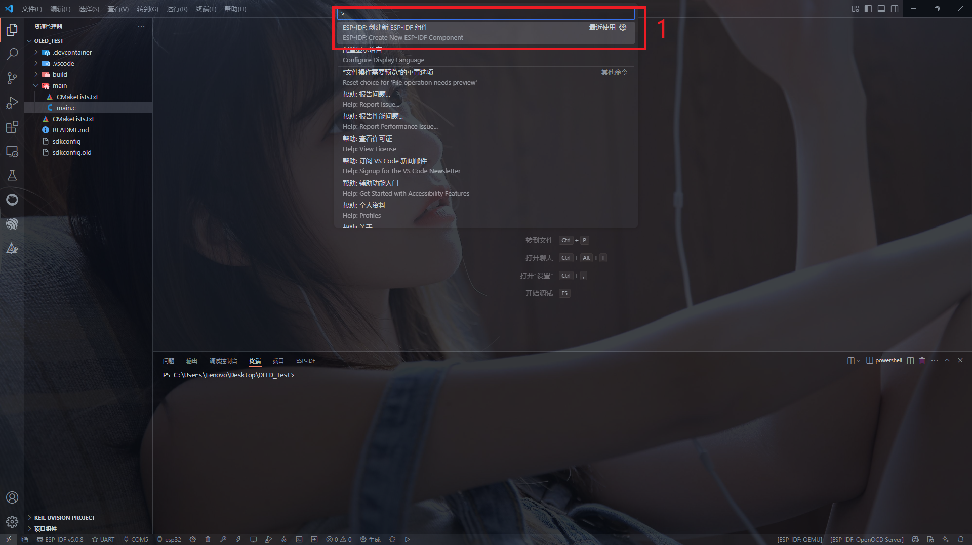 (1)、按住Ctrl+Shift+p键,在搜索栏中输入ESP-IDF,找到创建组件选项。