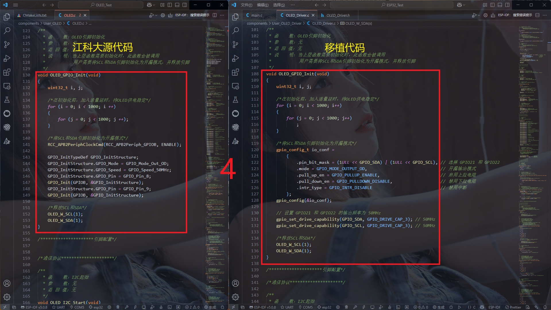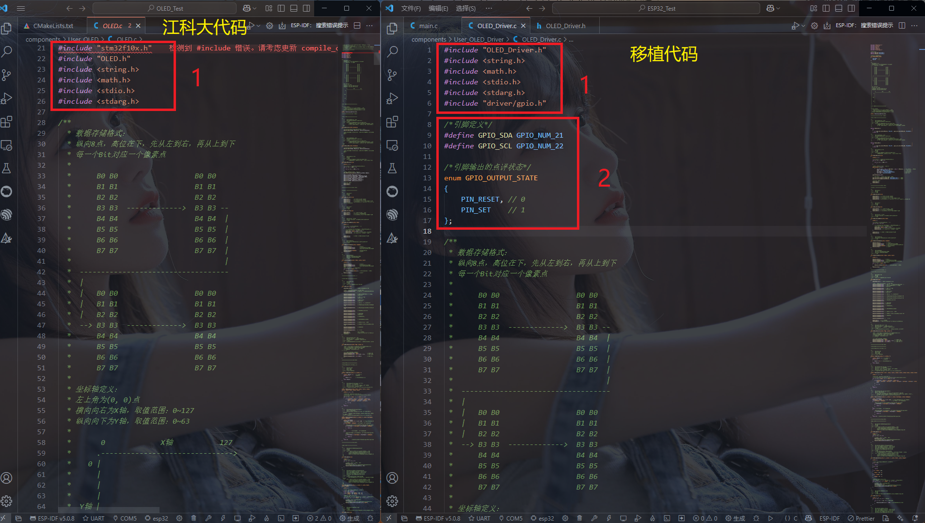 (1)、头文件中删除#include “stm32f10x.h”,将#include “OLED.h”修改为#include “OLED_Driver.h”,增加#include “driver/gpio.h”