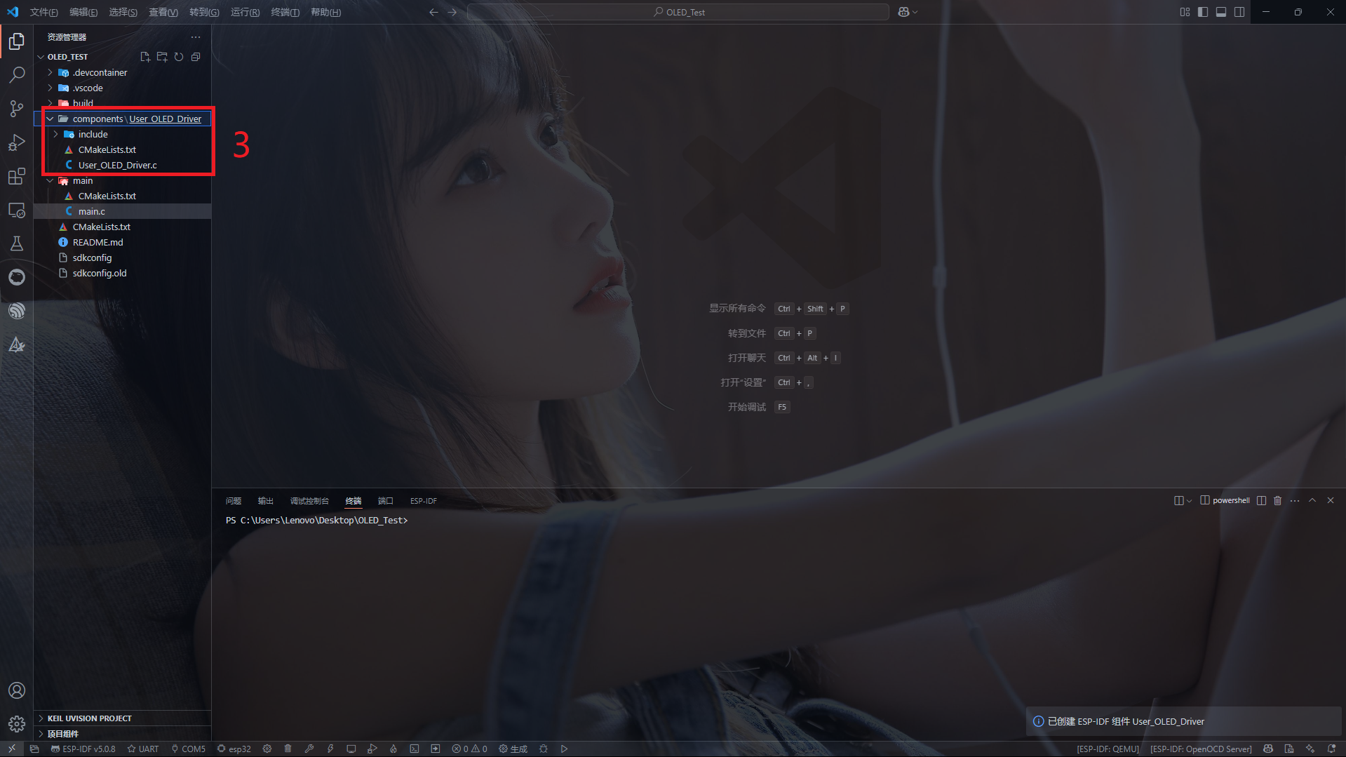 组件创建完成后,VScode中左侧栏资源管理器中的User_OLED_Driver文件组成应该与下图一致。
