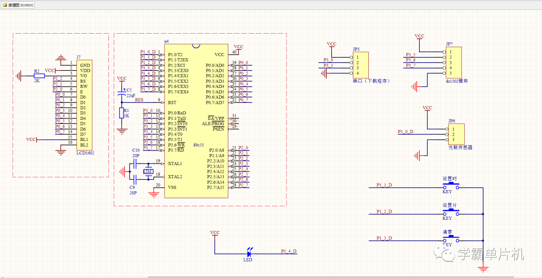 51单片机最小系统:单片机、复位电路、晶振(时钟)电路、电源