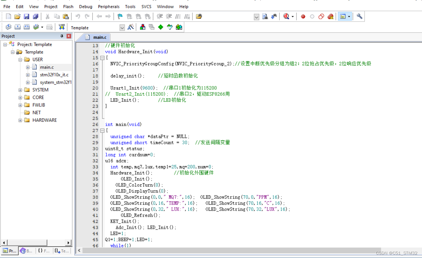 OLED_ShowString(0,0," MQ7:",16); OLED_ShowString(70,0,"PPM",16);