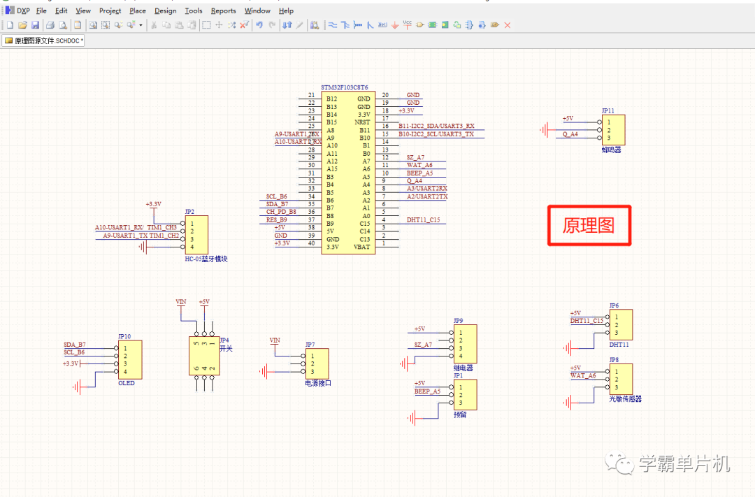 该设计使用STM32单片机结合OLED显示屏、HC-05蓝牙模块、DHT11温湿度传感器、光敏模块、继电器和蜂鸣器,实现对温湿度和光照强度的实时监测。当环境参数超出预设范围时,系统会通过继电器自动调节并利用蓝牙将数据传输到手机APP。资料包括程序、原理图和PCB设计,适合新手学习。