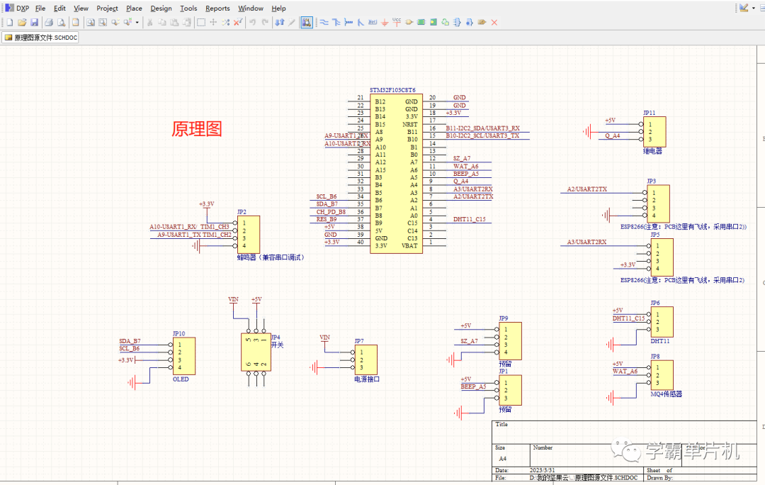 该系统利用STM32单片机结合DHT11温湿度传感器和MQ4天然气传感器,监测环境参数。数据在OLED屏幕上显示,并通过ESP8266模块上传到OneNET云平台。当环境条件超出预设阈值时,继电器控制风扇排气。程序有详细注释,适合新手学习。硬件包括电源电、USB接口、复位电路和晶振电路等关键部分。