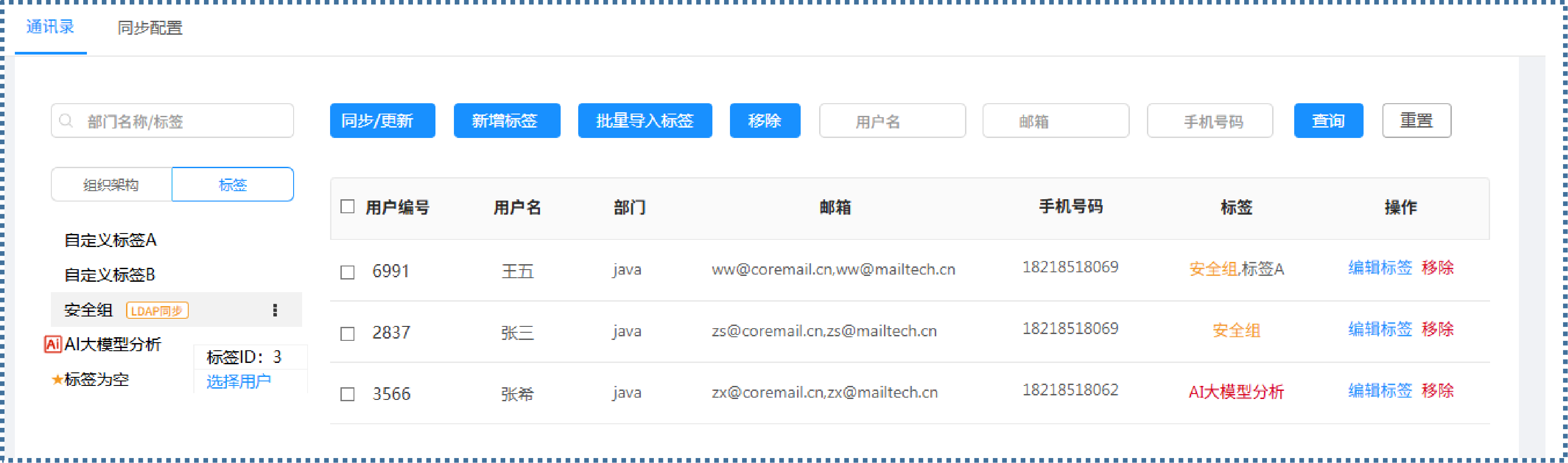 CACTER EDLP支持在“AI大模型分析”标签中分类重点用户,传统检测引擎未检测出异常的邮件可提交给大模型深度分析,既控制了分析数量,保证生产效率又确保关键风险不遗漏。