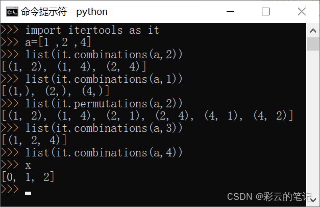 这段代码定义了一个名为deff的Python函数,用于生成嵌套列表。当输入n为1时,返回一个包含单个列表的列表。否则,通过两层循环构造n-1个子列表,并将原始列表的第一个元素添加到每个子列表中,最终返回所有子列表的集合。示例中,调用f(2)生成了长度为2的嵌套列表,输出了其长度及内容。