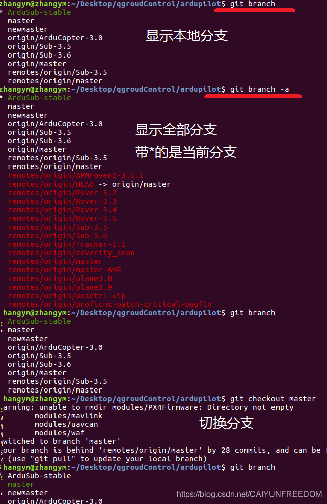 zhangym@zhangym:~/Desktop/qgroudControl/ardupilot$ git branch -a