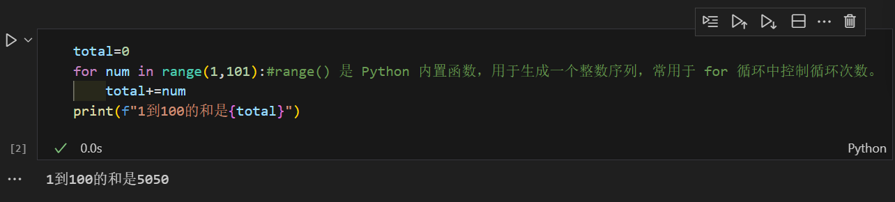 range(1, 101) | 1, 2, ..., 100 | 从 1 到 100 ✓ 本题使用 |