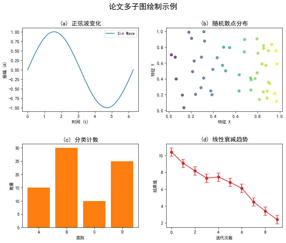 fig.suptitle('论文多子图绘制示例', fontsize=18, fontweight='bold', y=1.02)