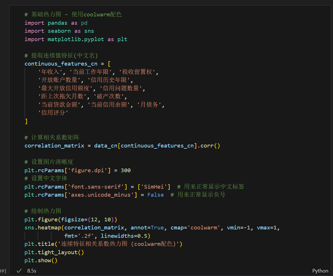 - coolwarm: 冷暖色调,适合展示正负相关(蓝色表示负相关,红色表示正相关)