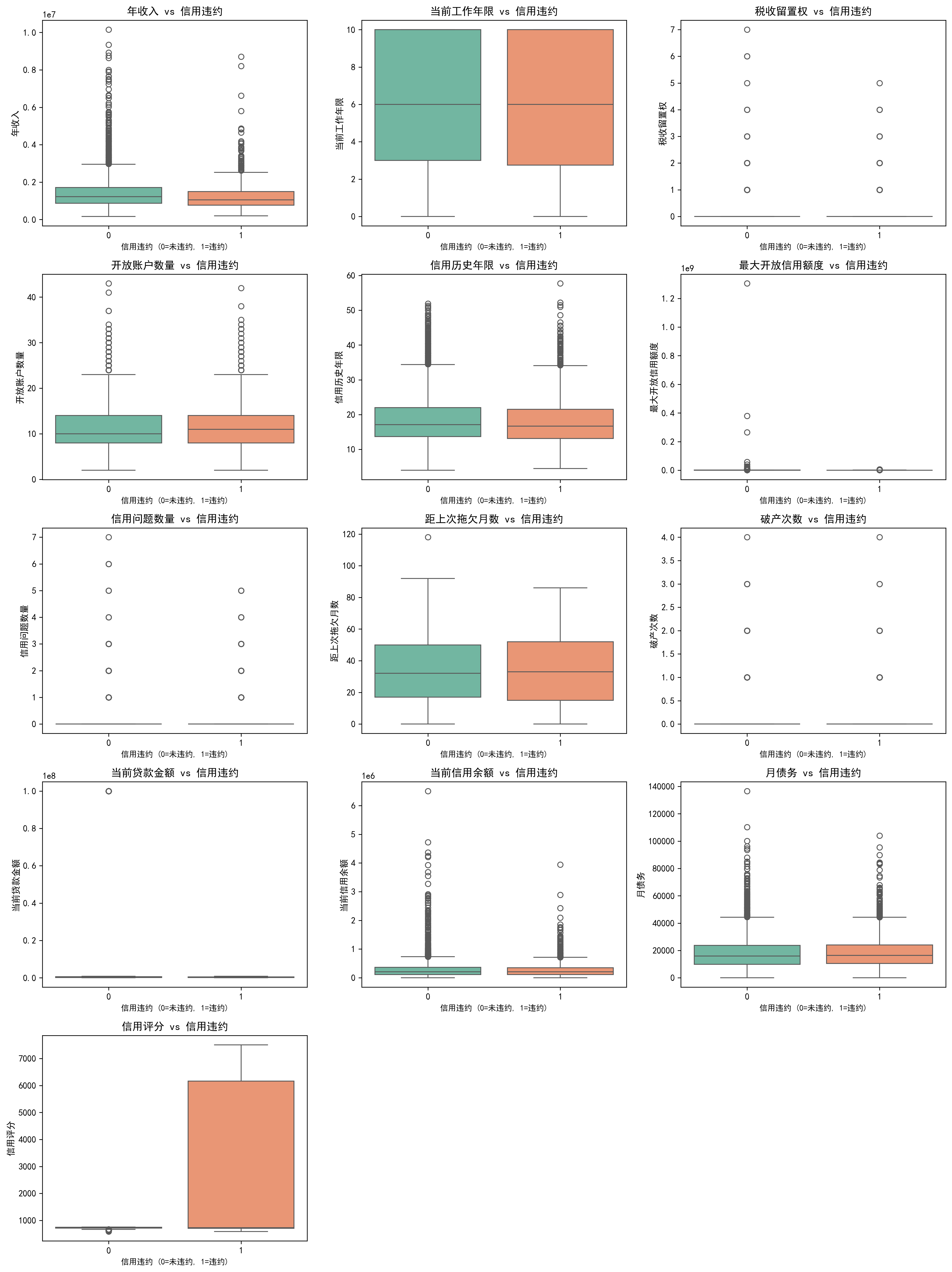 3.4 按信用违约分组的箱线图
