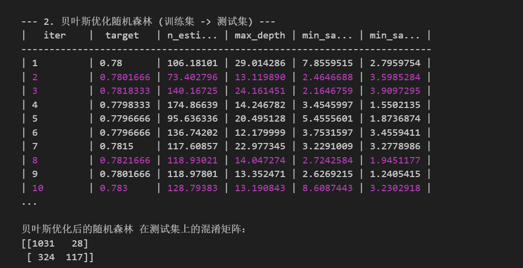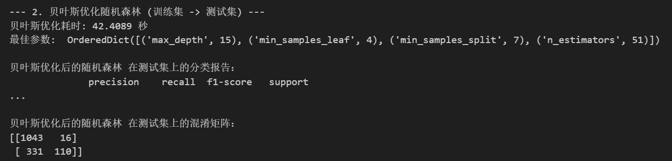 print("\n贝叶斯优化后的随机森林 在测试集上的分类报告:")