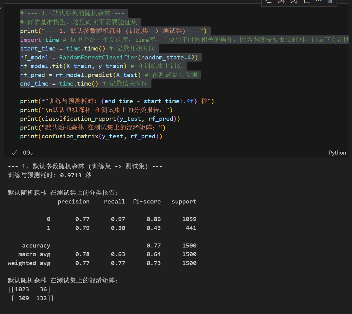 - ⭐ 随机搜索精确率最高:0.83,说明它找到的参数在识别违约客户时最准确