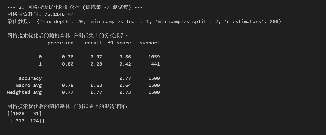 | 网格搜索 | 0.77 | 0.80 | 0.28 | 0.42 | |
