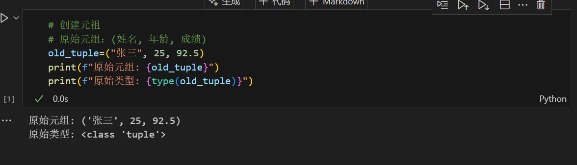 不可变意味着他不具备增删改的步骤,增加就是创建新元组了