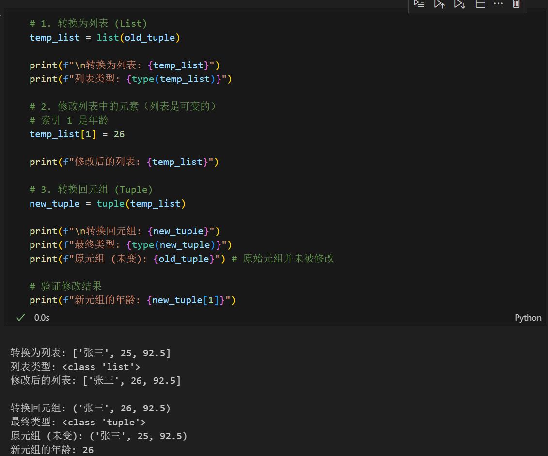 - 可迭代、可切片 所以元组适合存储不应被程序意外修改的数据(例如配置常量、数据库记录的字段等)。函数返回多个值时,默认就是以元组的形式返回的。由于元组是不可变的,它可以作为字典的键(List 不可以)。