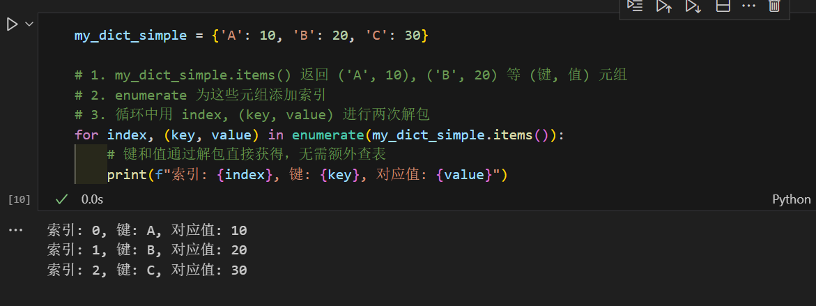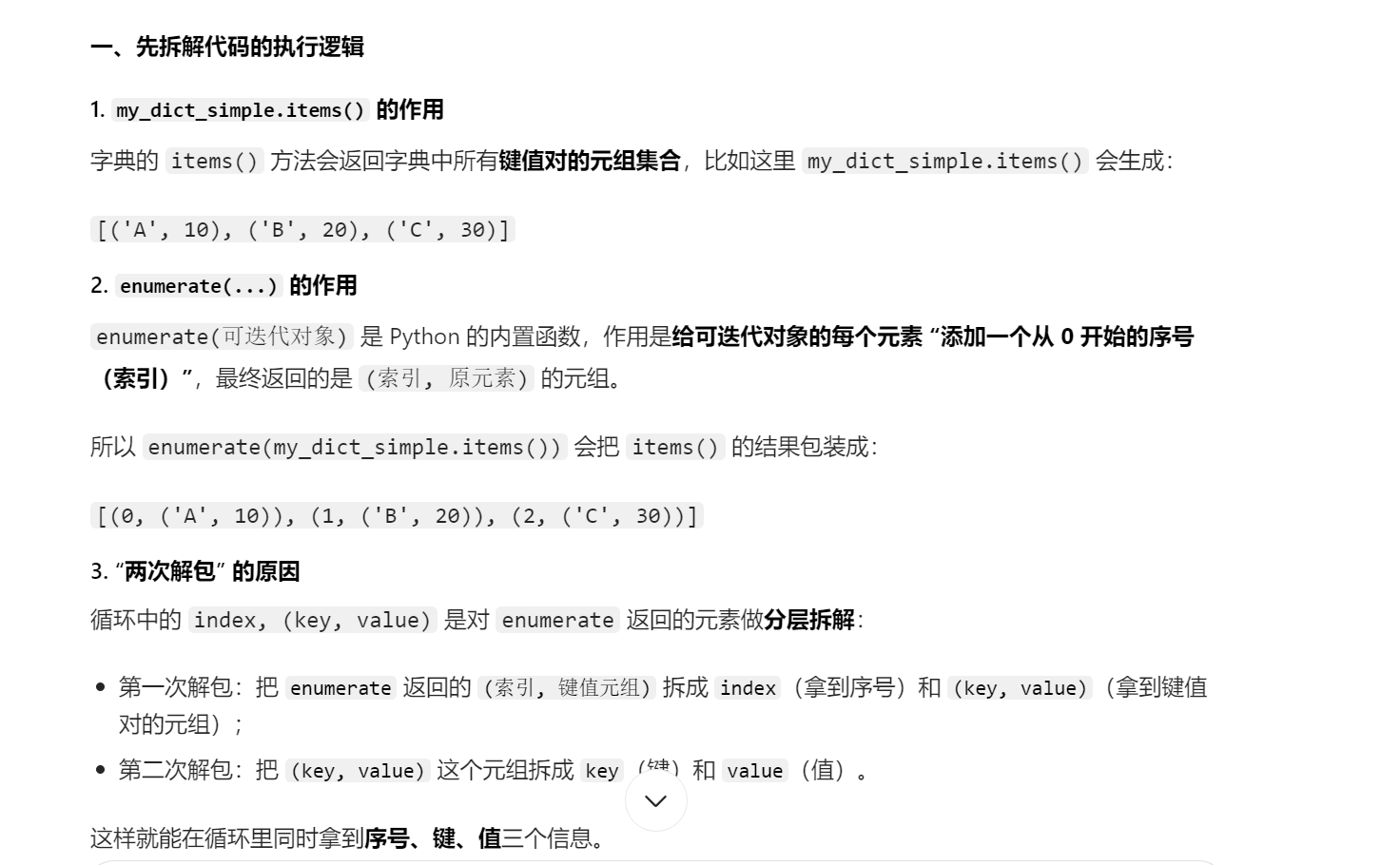 在python历史中,字典是无序的,Python 3.7 及更高版本,字典正式成为有序的。这意味着字典会记住键的插入顺序,并且在遍历时(包括使用 enumerate() 时),会严格按照这个顺序进行。这也意味着以后常见数据结构只能遇到集合是无序的了。