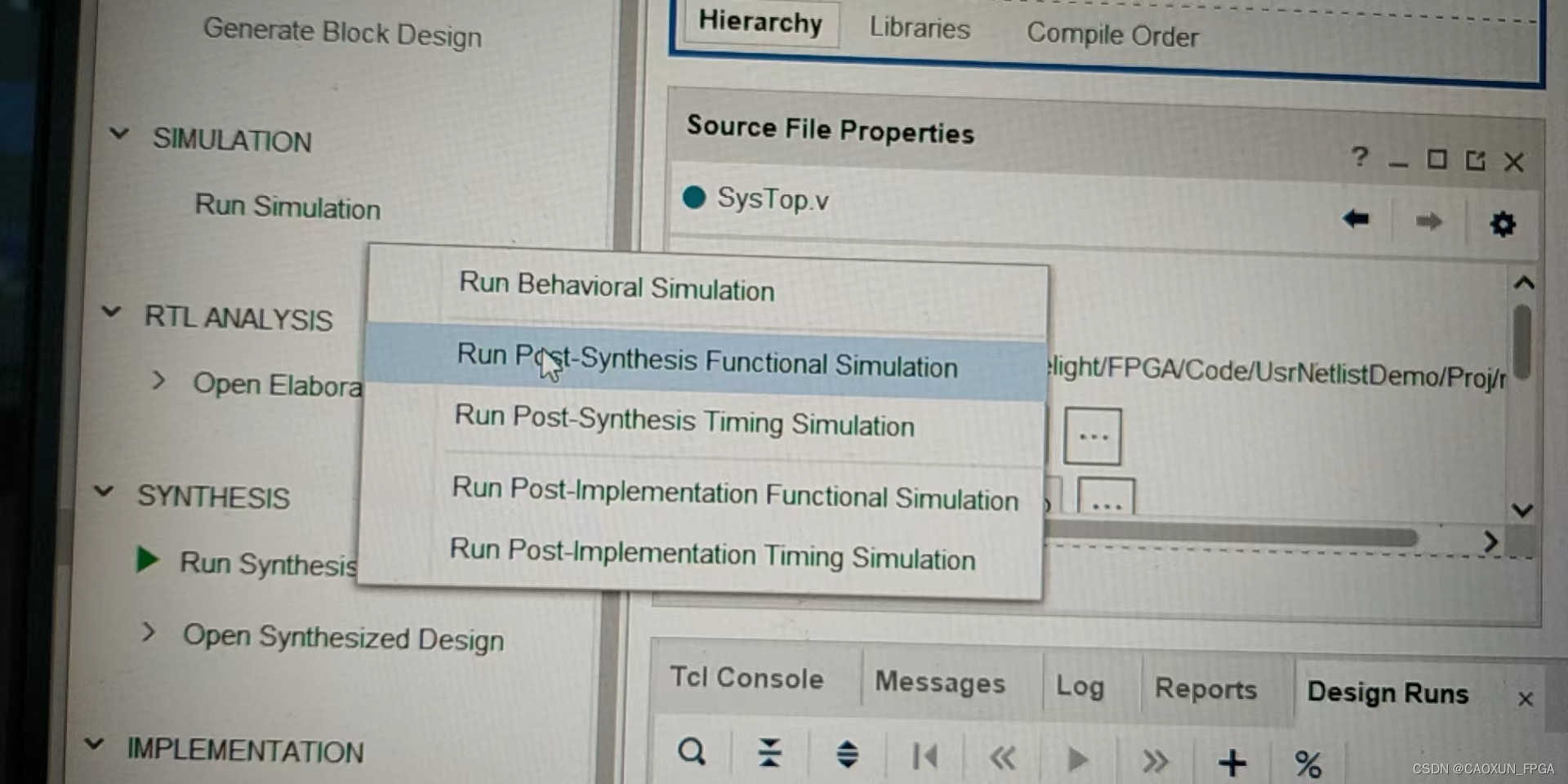 注意:如果进行RTL功能仿真,则网表文件不支持。因为打开网表文件,全部都是对应的门级电路原语。