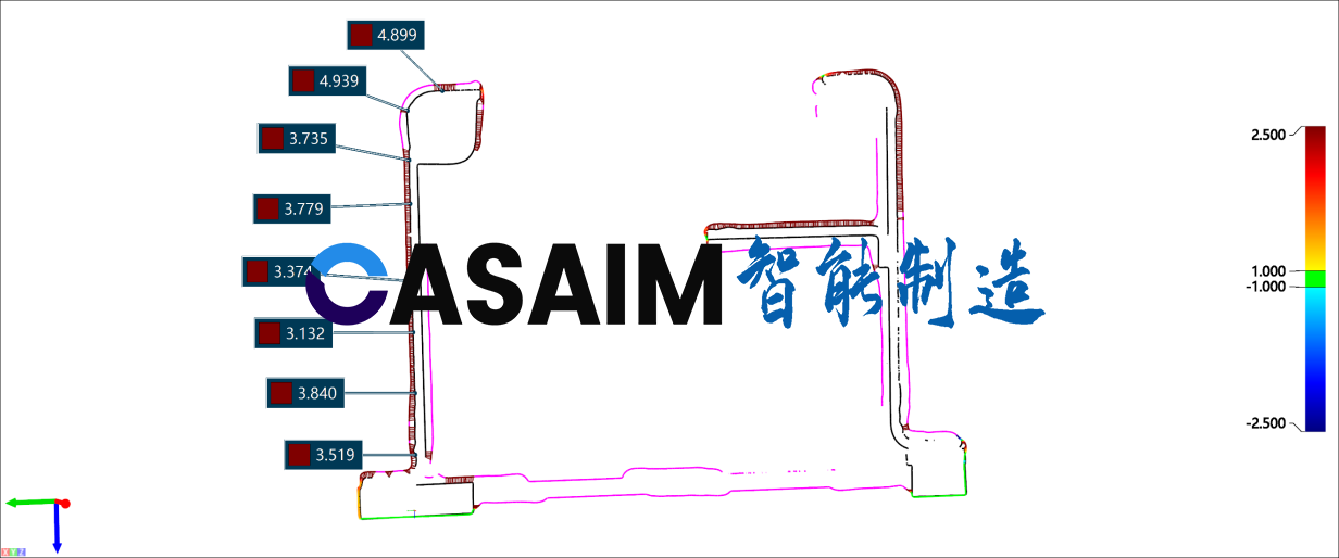 通过中科院广州电子科教与智能制造部CASAIM三维扫描检测仪可以快速对焊接结构件外观质量控制,完成扫描只需要2分钟,检测分析只需要耗时5分钟,给予客户直观的分析结果呈现,即可获得焊接结构件的相关3D尺寸,分析焊接结构件焊接前后变形情况,同时监测焊接缝数据情况,方便后续进行精加工数据的补偿处理。