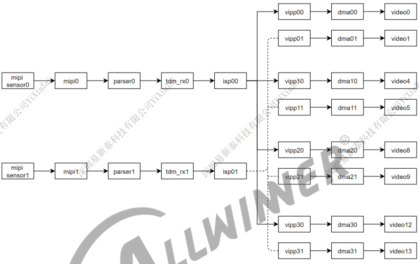 请直接参考官方手册《AW_AIOT_Linux_Camera_开发指南.pdf》,以下主要对链路部分上的关键节点做个总结: