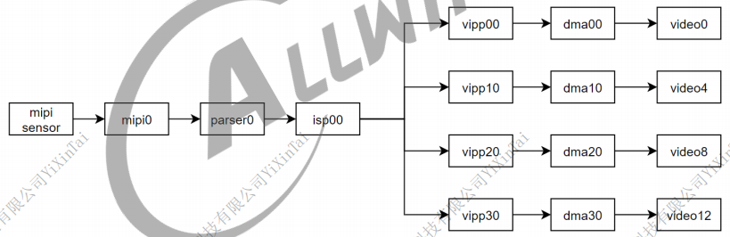 - 然后经过 isp00(即 isp0,为真实存在的 ISP 实体)的处理后,分 4 路输入到 vipp00/10/20/30 中,必要时进行图像缩小;