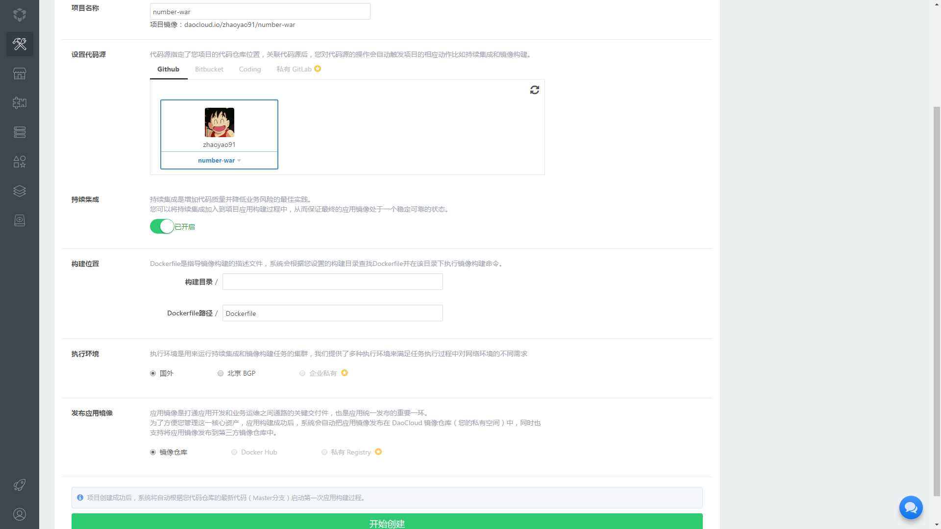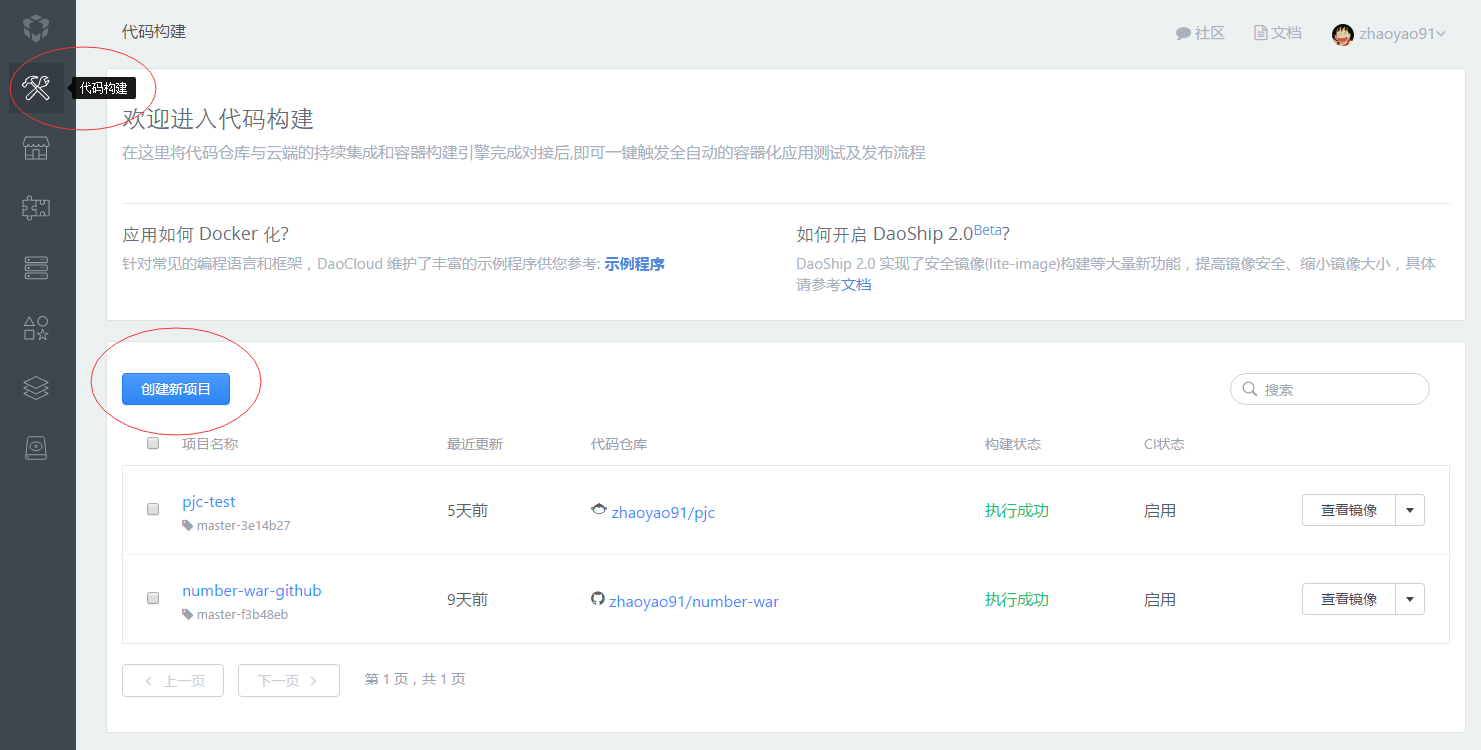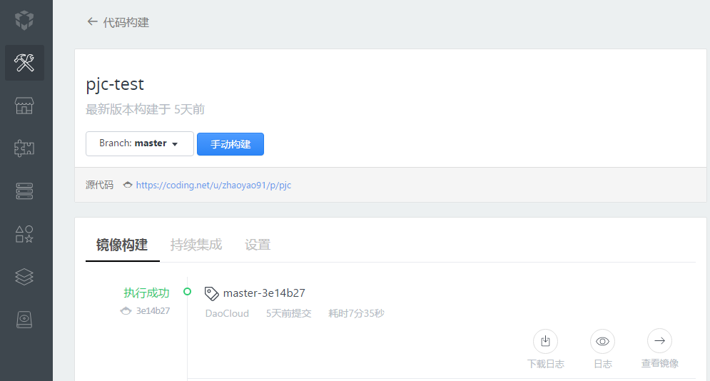 - 构建代码(从代码构建image)。通常,创建代码构建之后会自动触发一次构建,如果你更新了代码,可以手动触发构建