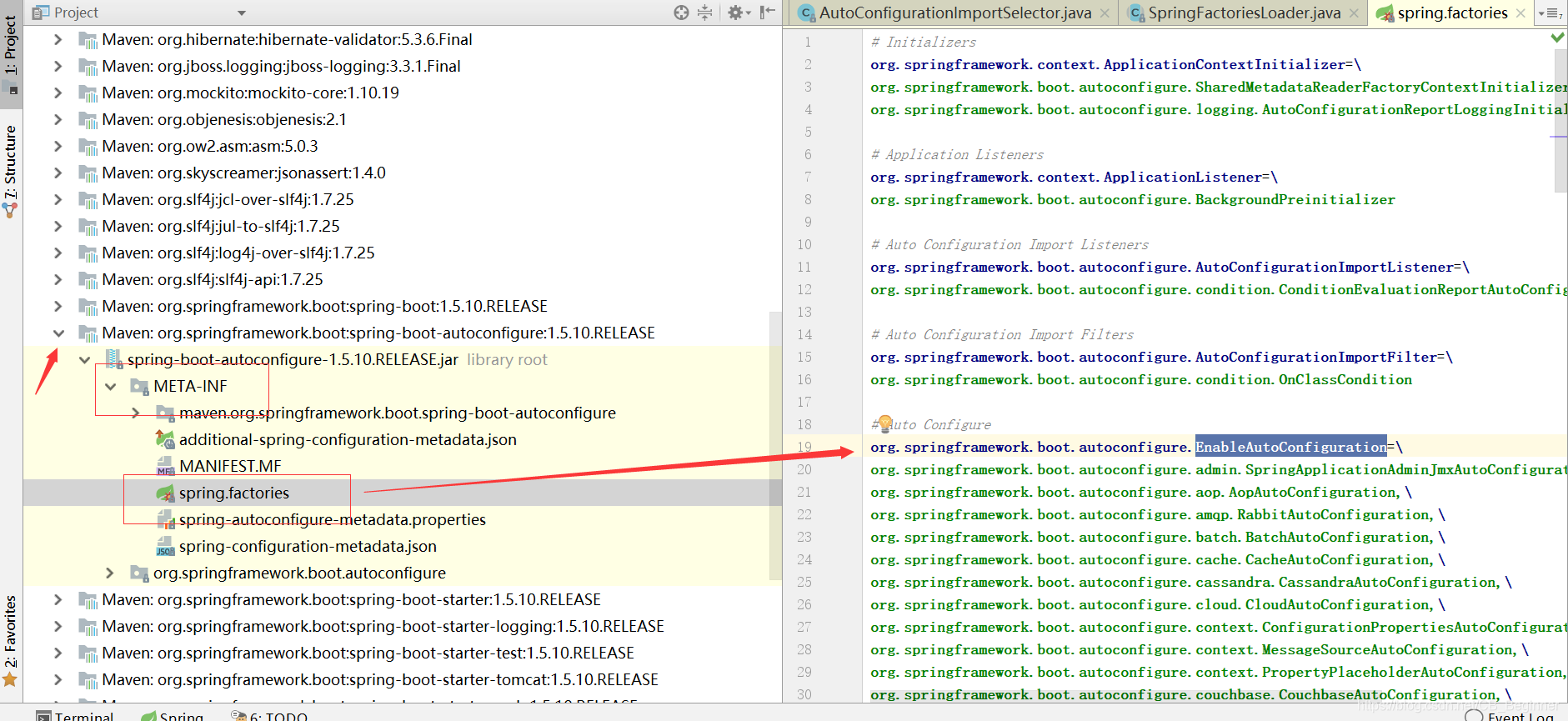 即这个自动配置加载的url都是来自META-INF/spring.factories里EnableAutoConfiguration配置下的所有值