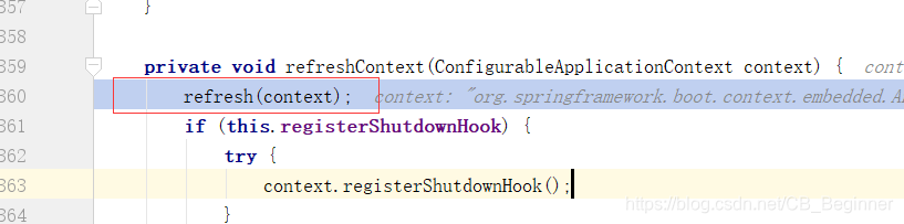 2.、refreshContext(context);SpringBoot刷新IOC容器【创建IOC容器对象,并初始化容器,创建容器中的每一个组件】;如果是web应用创建**AnnotationConfigEmbeddedWebApplicationContext**,否则:**AnnotationConfigApplicationContext**