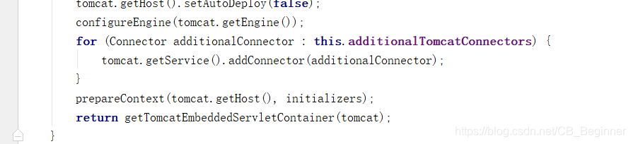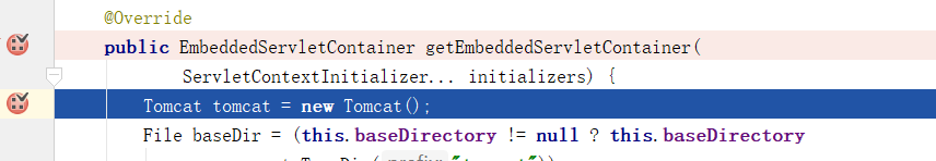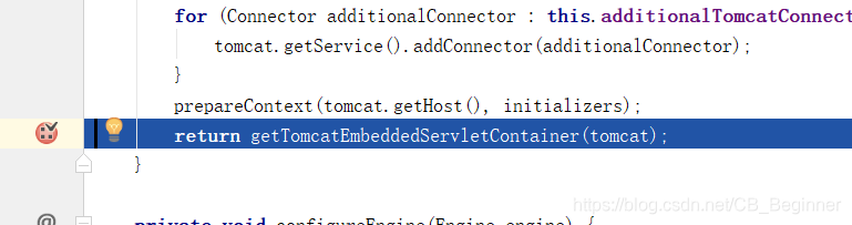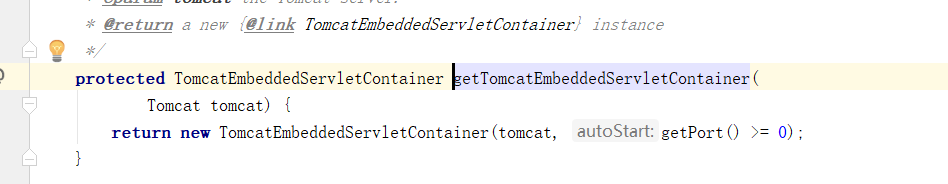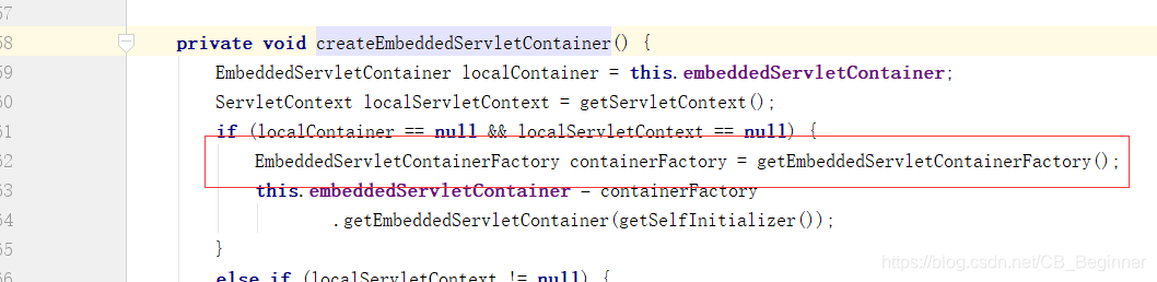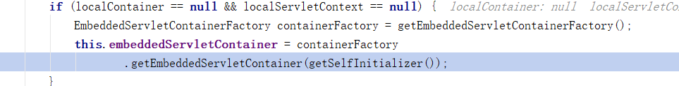 7)、**使用容器工厂获取嵌入式的Servlet容器**:this.embeddedServletContainer = containerFactory .getEmbeddedServletContainer(getSelfInitializer());