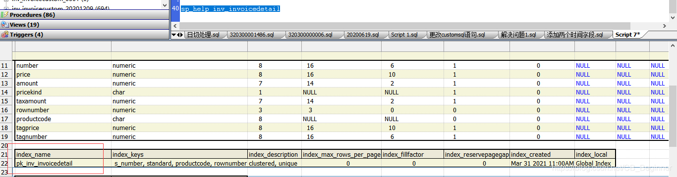 pk_inv_invoicedetail:主键名 ,可通过sp_help 表名查询