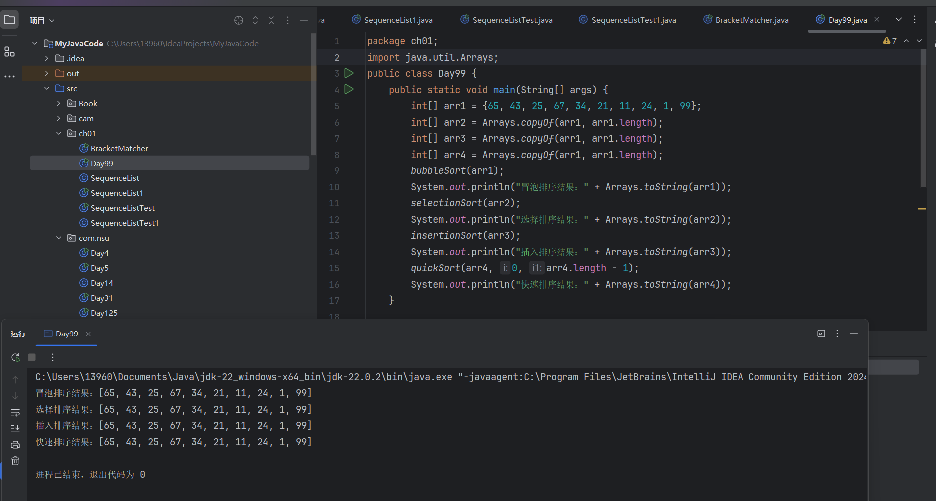 缩小增量重复:完成一轮分组排序后,缩小增量,重新分组再排序。如上述数组,当 gap 缩小为 2,重新分组后再进行插入排序。直到增量为 1,对整个数组进行最后一次插入排序,完成最终排序 。