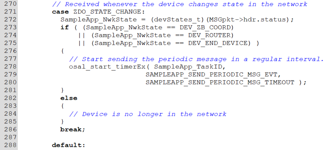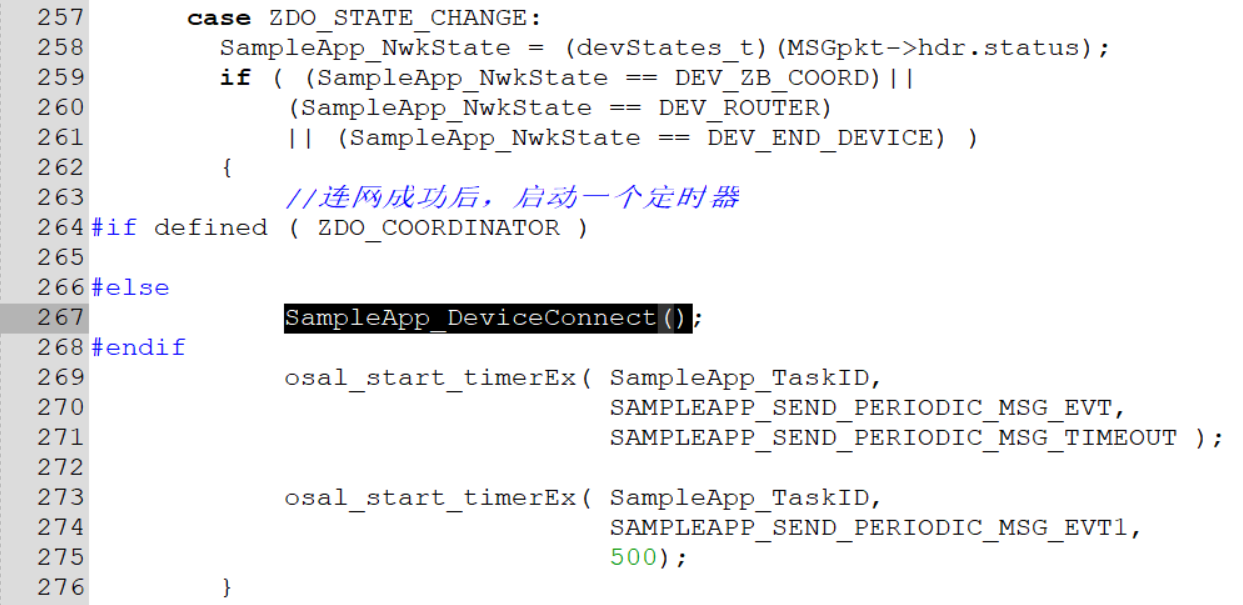 这里的原理就是系统的一个定时器时间一到,就会依次检查按钮,无线接收,网络状态这三个case是否有事件产生,osal_start_timerEx()就是我们的定时器函数,是必不可少的。