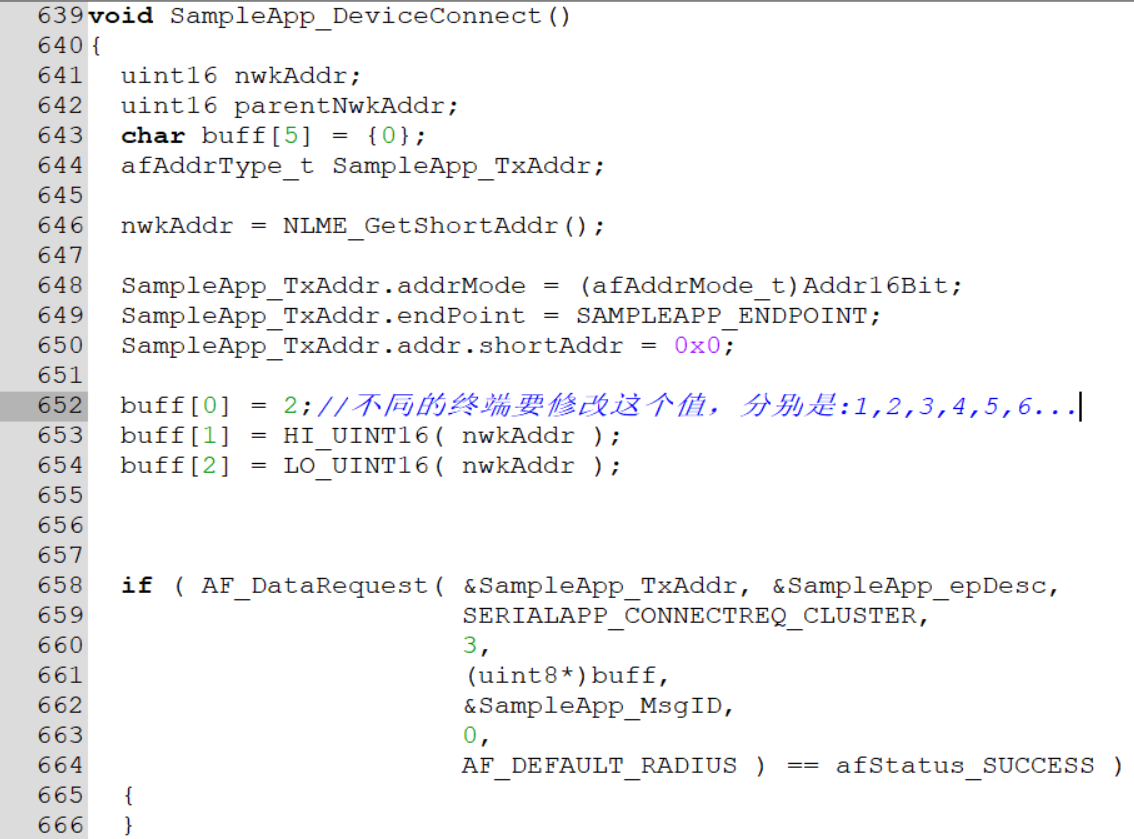 AF_DataRequest(&SampleApp_P2P_DstAddr, // 目标地址:协调器(0x0000)