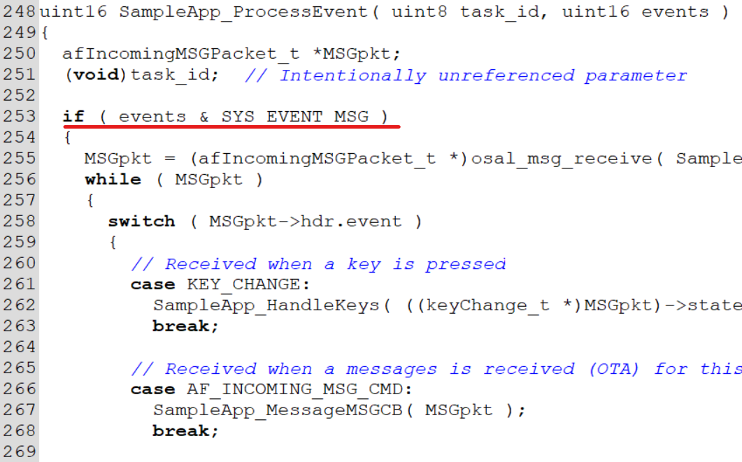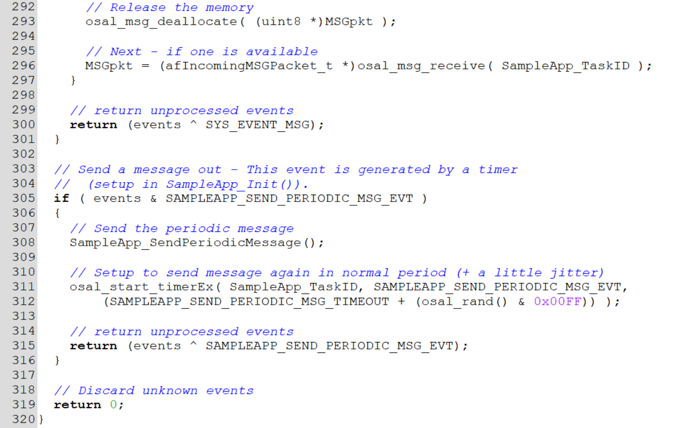 SampleApp_ProcessEvent( uint8 task_id, uint16 events )