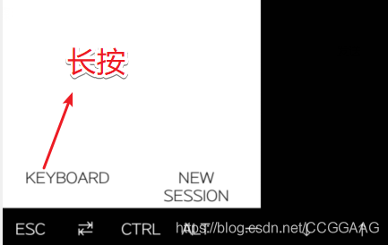 方法一:从左往右滑动,然后就会出现如图这样的页面,长按 KEYBOARD即可调出菜单,而NEW SESSION是新建一个窗口。
