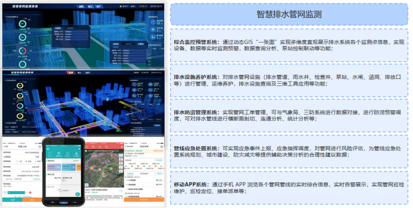 中渝软通(重庆)信息技术有限公司提供的城市智慧排水系统,借助物联网、大数据和人工智能技术,实现了排水系统的全方位监测、智能分析和精准调控。该系统在内涝防汛、排水管网管理、污水处理厂优化、河道水系治理和危险源安全管理等场景中发挥重要作用,显著提升了排水系统的运行效率和管理水平,为城市水环境改善和可持续发展提供保障。未来,该系统将持续助力宜居、绿色、智慧城市建设。
