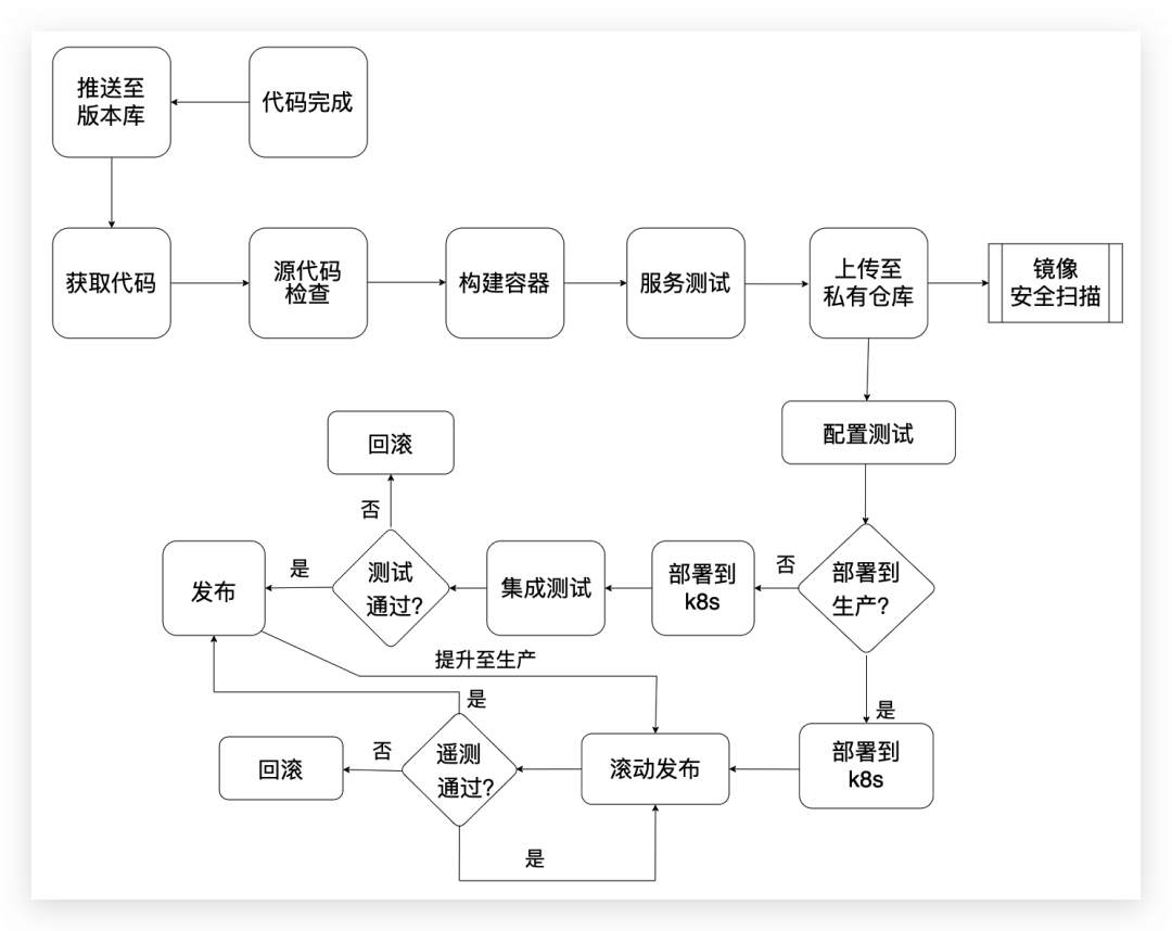 DevOps(它是“Development”和“Operations”的缩写),就是从开发到运维,整个过程自动化。自动化地编译、测试、构建容器、上传容器、部署、发布、监控、告警等,如果发现了Bug或问题,团队能够迅速迭代这一过程,修改代码,然后又是自动化的编译、测试、部署、发布等,一天可以来上这么10次!