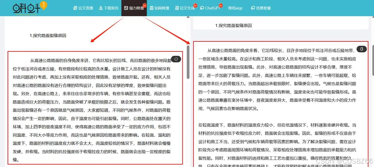 随着科技的进步,AI降重这些年也逐渐风靡起来。我们可以使用优化过chat GPT的降重软件来降重和润色,例如:蝌蚪论文、checkbug、passos等,使用非常简单,只需要将全文或重复的红色部分上传到网站里面进行降重,在进行精细化润色。