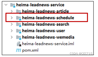 ①:导入资料文件夹下的heima-leadnews-schedule模块到heima-leadnews-service下,如下图所示: