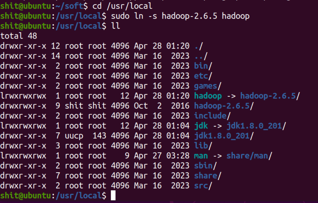 sudo tar -zxvf hadoop-2.6.5.tar.gz -C /usr/local