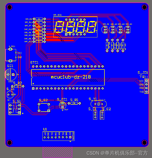 由原理图导出,封装很大一部分都是作者自己绘制,不提供封装库,只提供连接好的源文件。中间有一个项目编号,隐藏在单片机底座下,插入单片机后不会看到。
