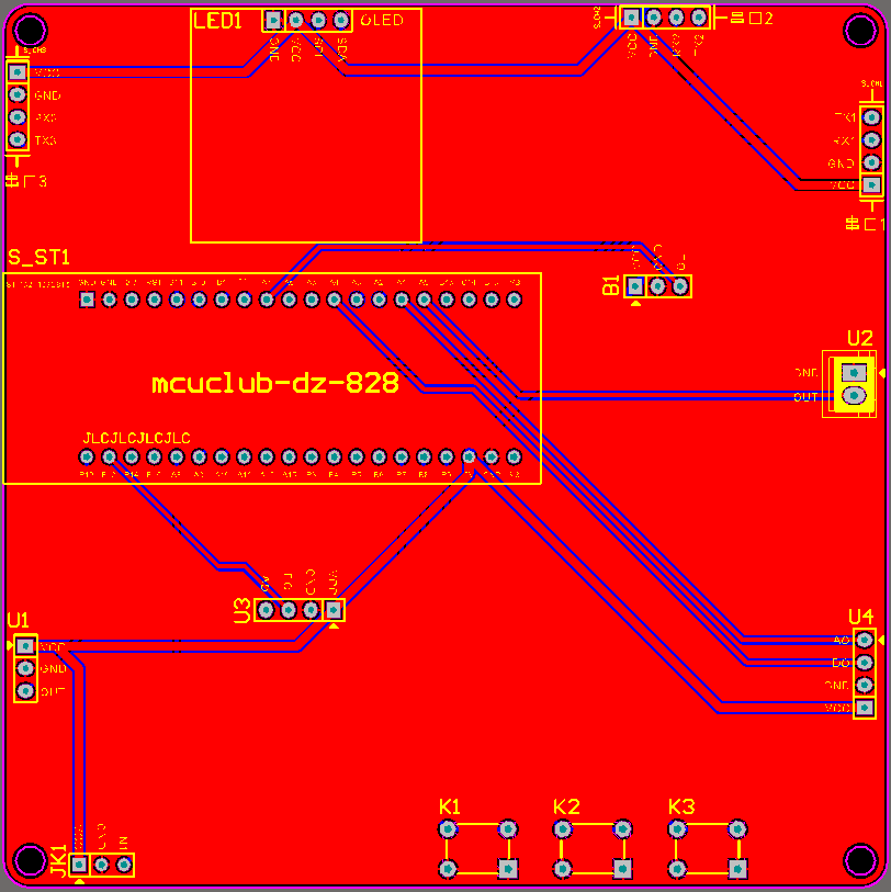由原理图导出,封装很大一部分都是作者自己绘制,不提供封装库,只提供连接好的源文件。中间有一个项目编号,隐藏在单片机底座下,插入单片机后不会看到。