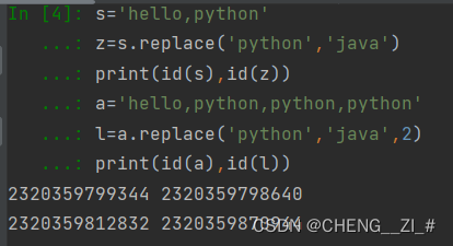 字符串驻留机制,python的驻留机制对相同的字符串只保留一份拷贝,后续创建相同字符串时,不会开辟新空间,而是把该字符串的地址赋给新创建的变量。