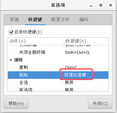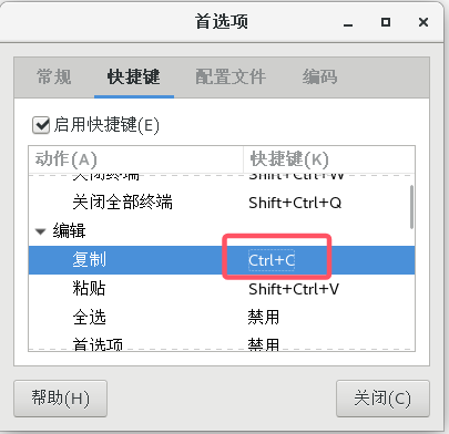 Ctrl+C被linux bash shell解释为中断程序的运行,所以在linux终端中想要粘贴复制需要使用的快捷键是:Ctrl+Shift+C 和 Ctrl+Shift+V。
