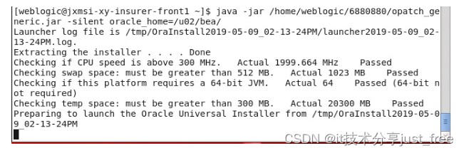 其中 /home/weblogic/6880880/opatch_generic.jar 为补丁目录。